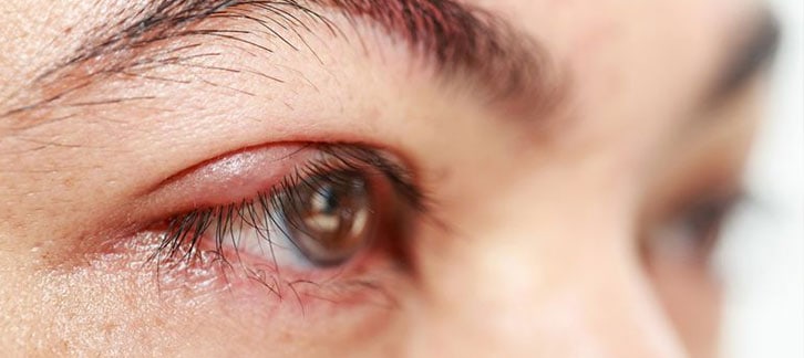 - تورم و التهاب پوست پلک، مخصوصا در اطراف توده گل مژه